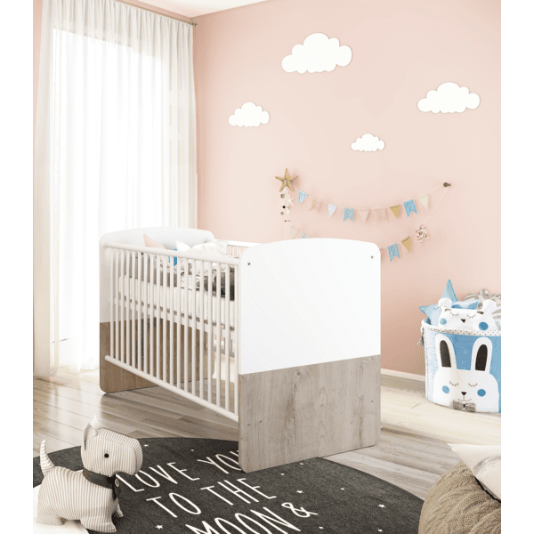 Ein Kinderzimmer, das Eleganz und Sicherheit vereint, schafft eine beruhigende Atmosphäre. Das Babybett aus Massivholz mit gerundeten Kanten und einem bogenförmigen Kopf- und Fußteil verbindet stilvolles Design mit den höchsten Sicherheitsstandards. So weißt du, dass dein Kind nicht nur sicher schläft, sondern auch in einem schönen Umfeld aufwächst.