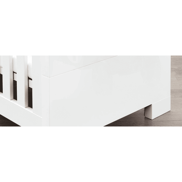 Im Lieferumfang sind das Kinderbett, ein 3-fach höhenverstellbarer Lattenrost und die Umbauseiten enthalten. Matratze und Dekoration sind nicht im Lieferumfang enthalten.