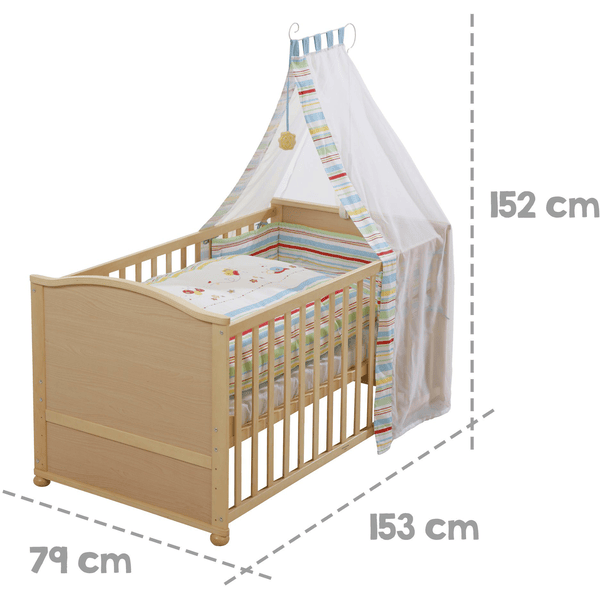 - Komplett ausgestattet: Niedliches Bettwäscheset, Himmel und passende Stange inklusive - alles, was dein Baby braucht.