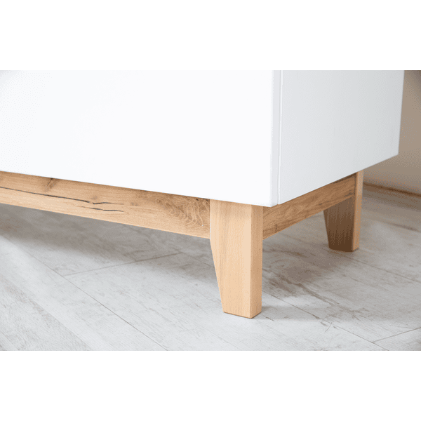 Die hochwertigen Holzgriffe aus robuster Buche verleihen der Kommode nicht nur ein edles Aussehen, sondern sind auch langlebig und stabil. Sie liegen gut in der Hand und machen das Öffnen und Schließen der Schubladen zu einem angenehmen Erlebnis. Diese Details zeigen, dass an alles gedacht wurde, um dir den Alltag zu erleichtern und gleichzeitig Stil und Funktionalität zu kombinieren.