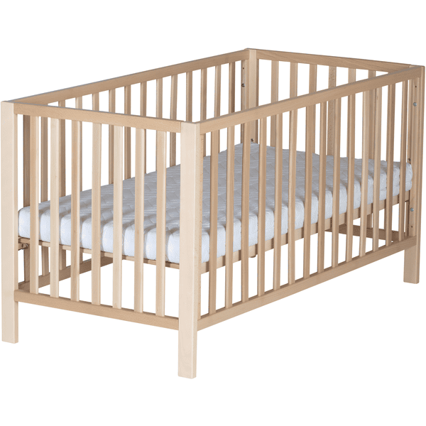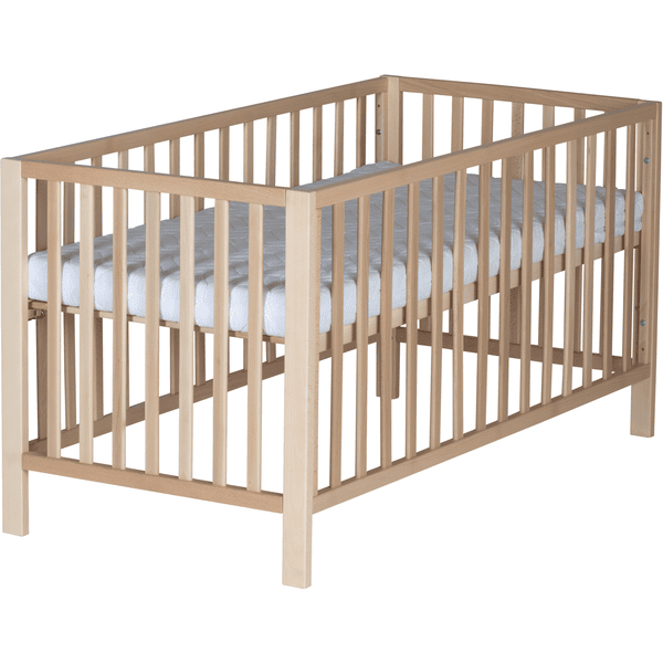 Das Bett ist aus massivem Buchenholz gefertigt, was für seine Robustheit und Langlebigkeit spricht. Dieses Material sorgt nicht nur für eine stabile Schlafumgebung, sondern auch für ein natürliches und warmes Ambiente im Kinderzimmer. Du kannst sicher sein, dass dein Baby in einem sicheren und gemütlichen Schlafplatz liegt.