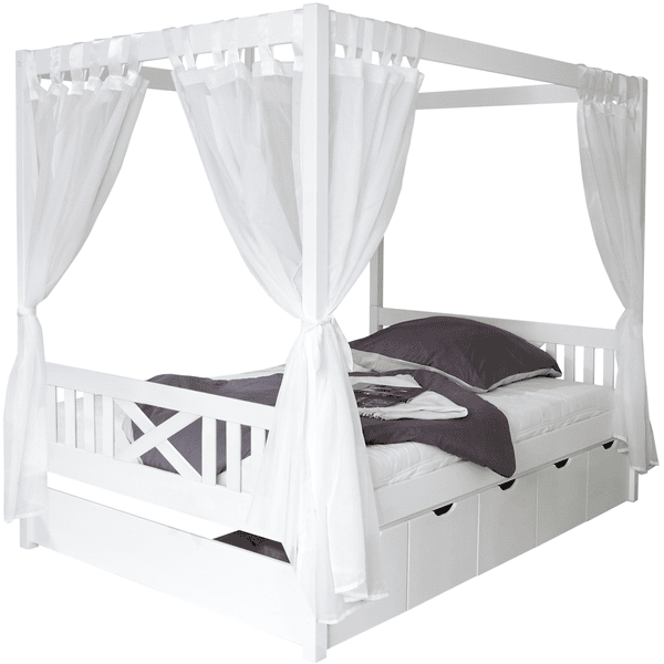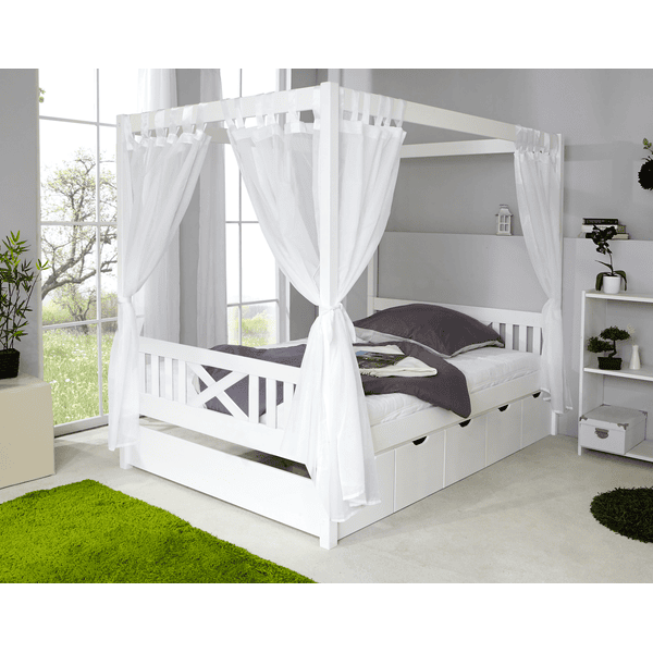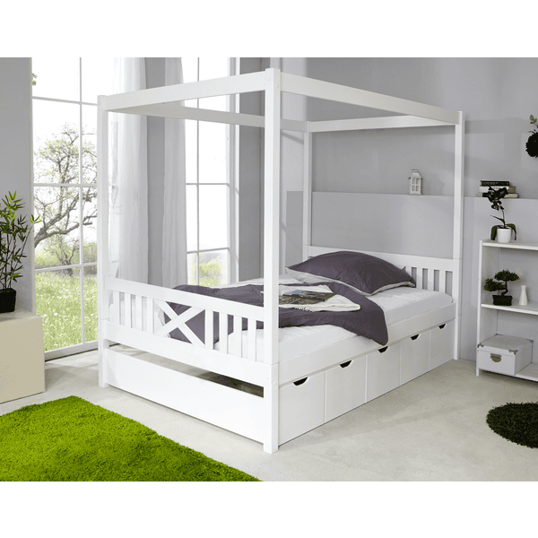 - TiCAA Himmelbett Lino weiß mit 5 Schubladen